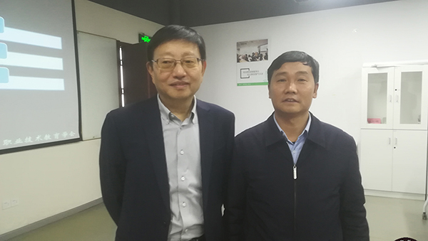 培訓課間,校長張璽博士認真與中國職教學會副會長、中職分會會長、全國中職校長聯(lián)席會主席鄔憲偉就我?!耙I習慣、分類培養(yǎng)”的辦學理念模式進行深入的交流,并得到鄔會長贊賞。