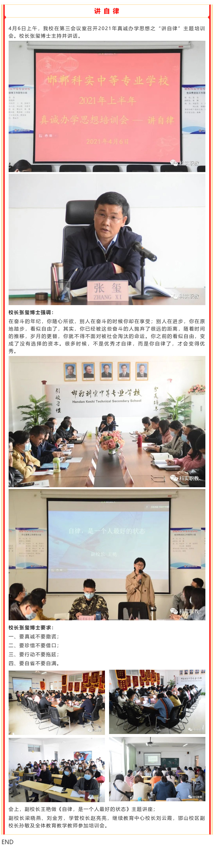我校舉辦2021年真誠辦學思想培訓會——講自律
