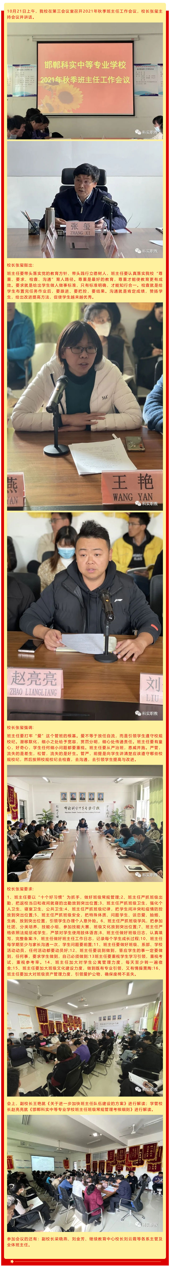 我校舉行2021年秋季班主任工作會(huì)議
